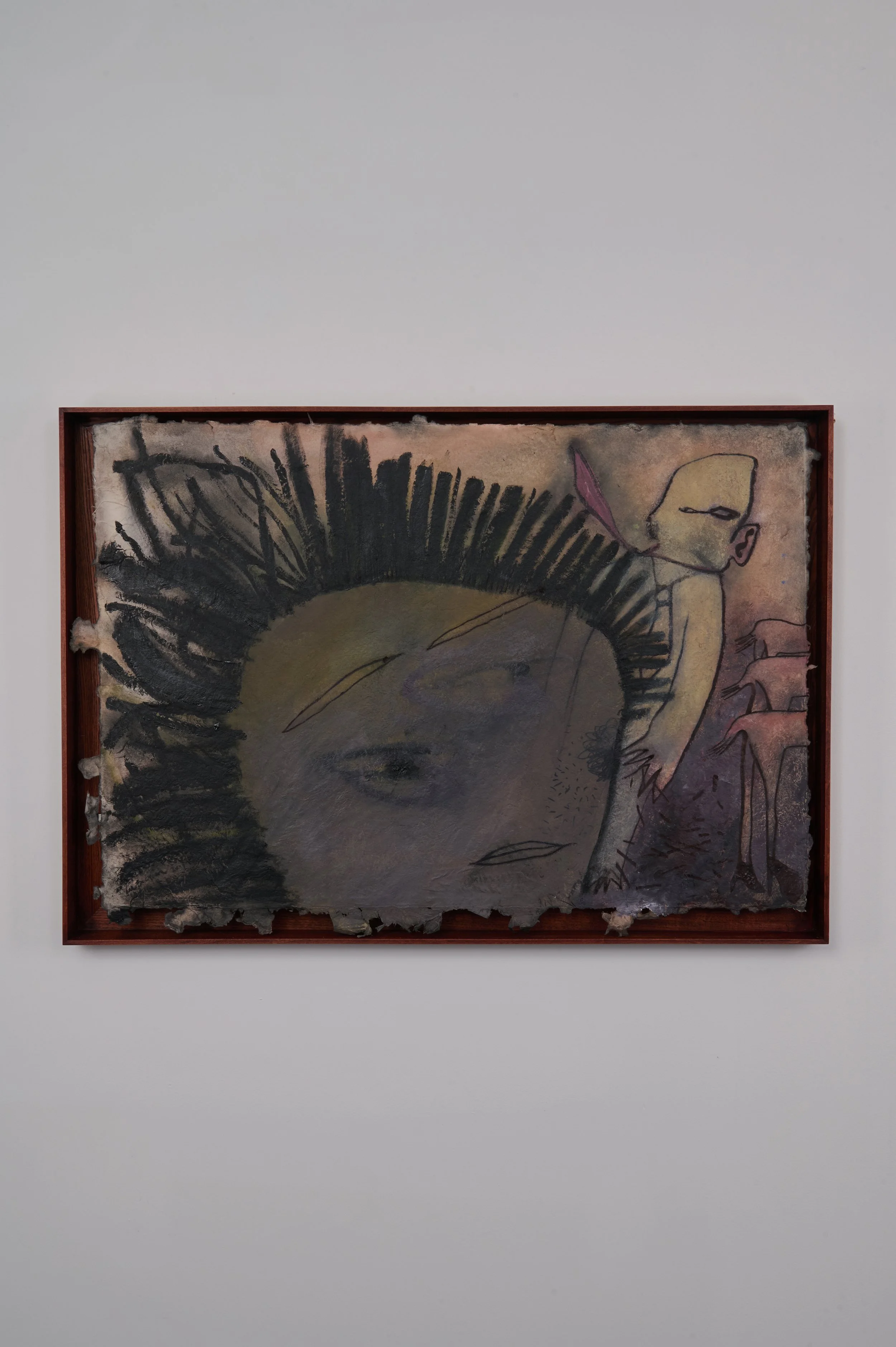 Walking plays a vital role in Gu Fangyuan’s creative process, serving as a key method of artistic exploration. This exhibition showcases works created during the past two years, when the artist lived and worked among ethnic minority communities in Southwest China. Immersing herself in the daily lives of local residents, she walked through tropical rainforests, learning about their customs, tribal cultures, migration histories, and spiritual beliefs. The symbiotic relationship between humans and nature, and the belief in the spirituality of all things, are central to the lives of these communities and have become the core inspiration for Gu Fangyuan’s work. This connection to “nature and the primal” is reflected not only in the content of her art but also in her creative methods and materials. For example, she incorporates handmade Dongba paper, a cultural symbol of the Naxi people, and ancient bark paper from the paper mulberry tree. Often abandoning traditional brushes, the artist uses her fingers to apply pigments directly onto the rough, unrefined textures of these natural materials. For Gu Fangyuan, this tactile engagement is her way of participating as a co-creator, touching and preserving the raw, unprocessed authenticity of her materials.